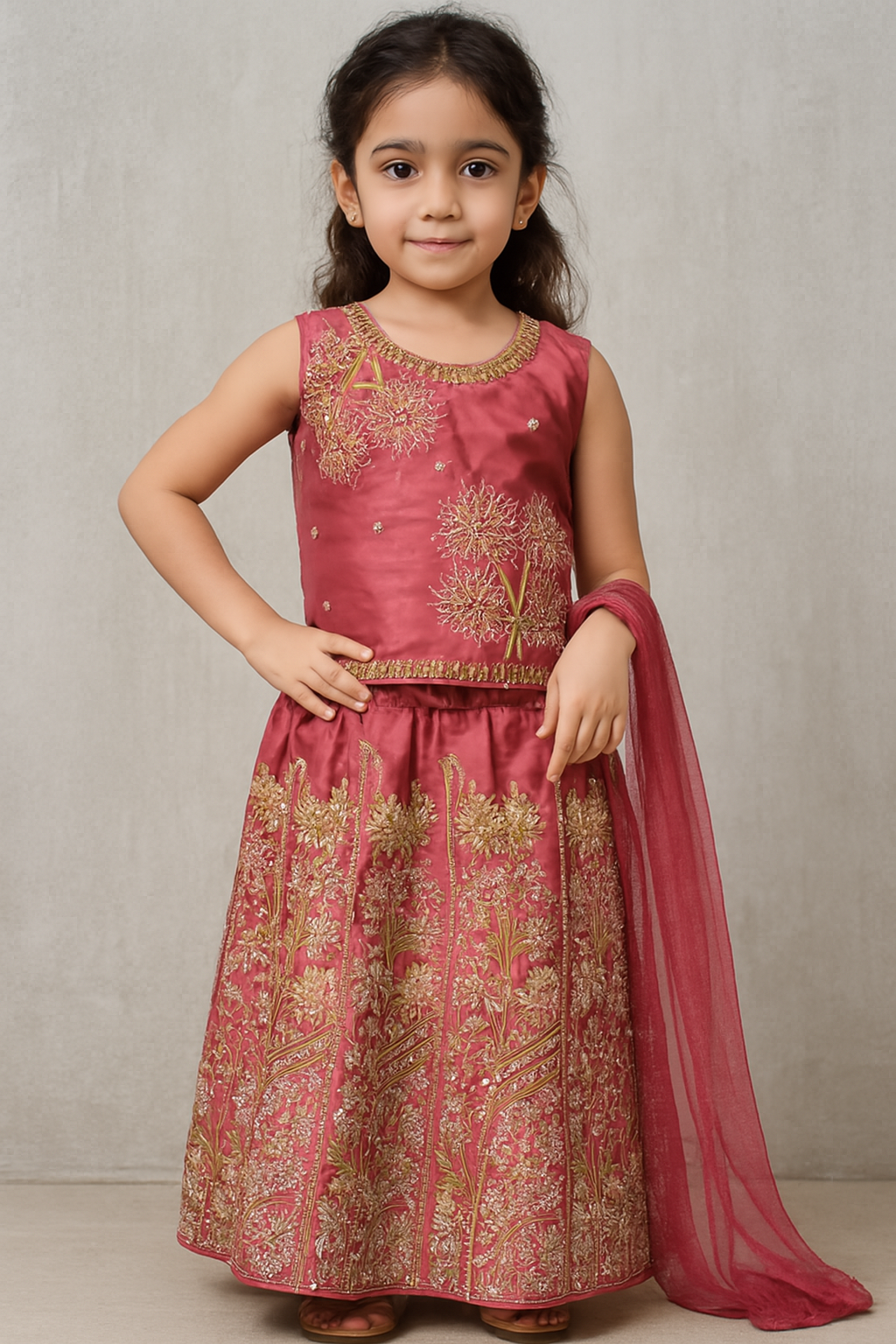 Dress your little one in timeless elegance with this beautiful pink lehenga choli set, designed especially for girls aged 6 to 8. Perfect for weddings, festivals, and cultural celebrations, this outfit blends traditional craftsmanship with modern charm.