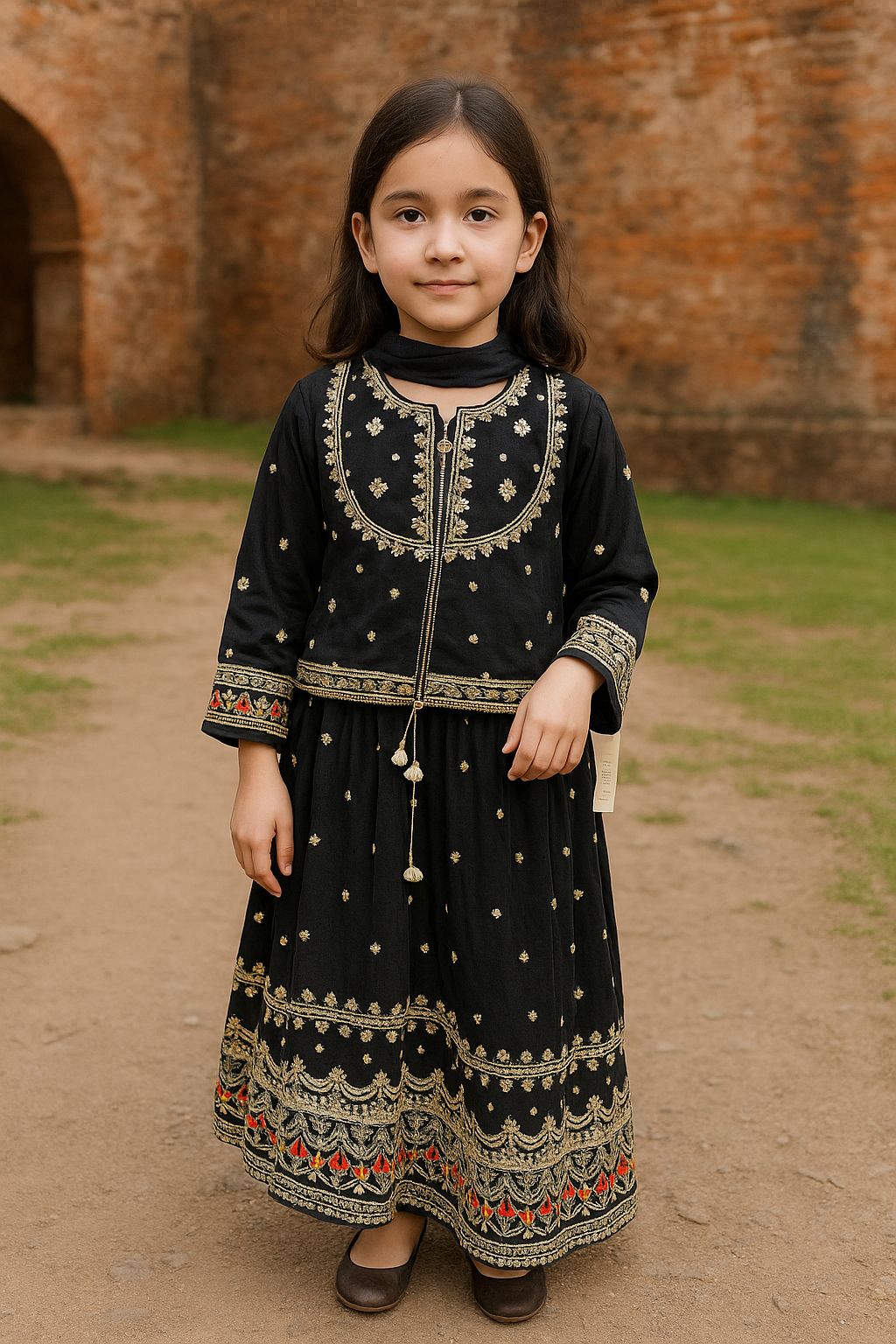 Elegant Black Embroidered Ethnic lehnga Dress for Girls