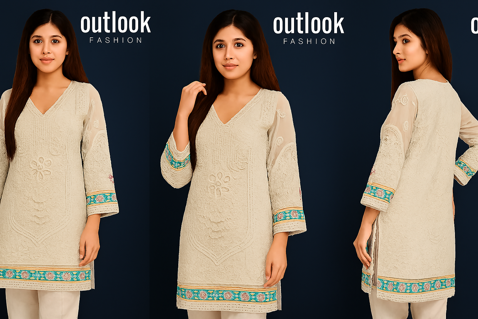 Elevate your wardrobe with this white embroidered kurta for women aged 20–29, exclusively from Outlook Fashion. Crafted with intricate floral, paisley, and geometric threadwork, this traditional South Asian outfit blends timeless elegance with modern appeal. The kurta features: